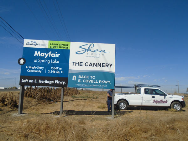 An incredibly effective way to advertise your project and guide clients to your door. These permanent signs are up 24/7 with directional information to your project.